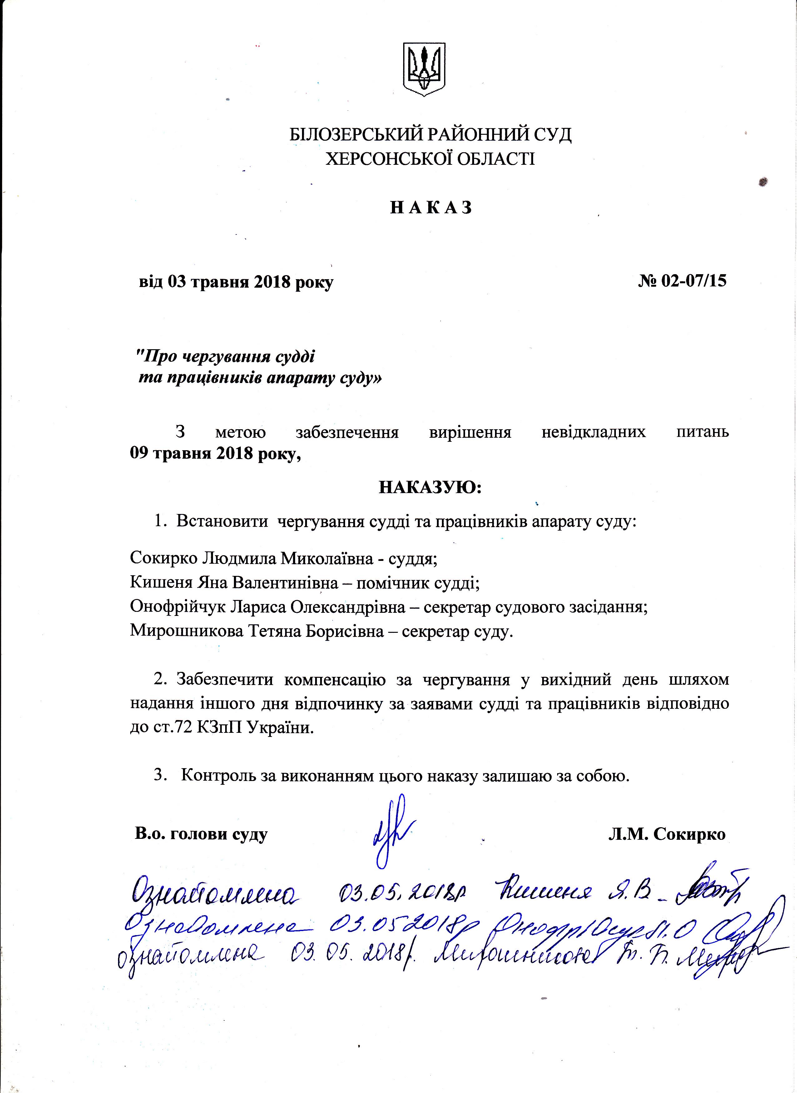 ПРАВИЛА внутрішнього службового розпорядку Білозерського районного суду Херсонської області