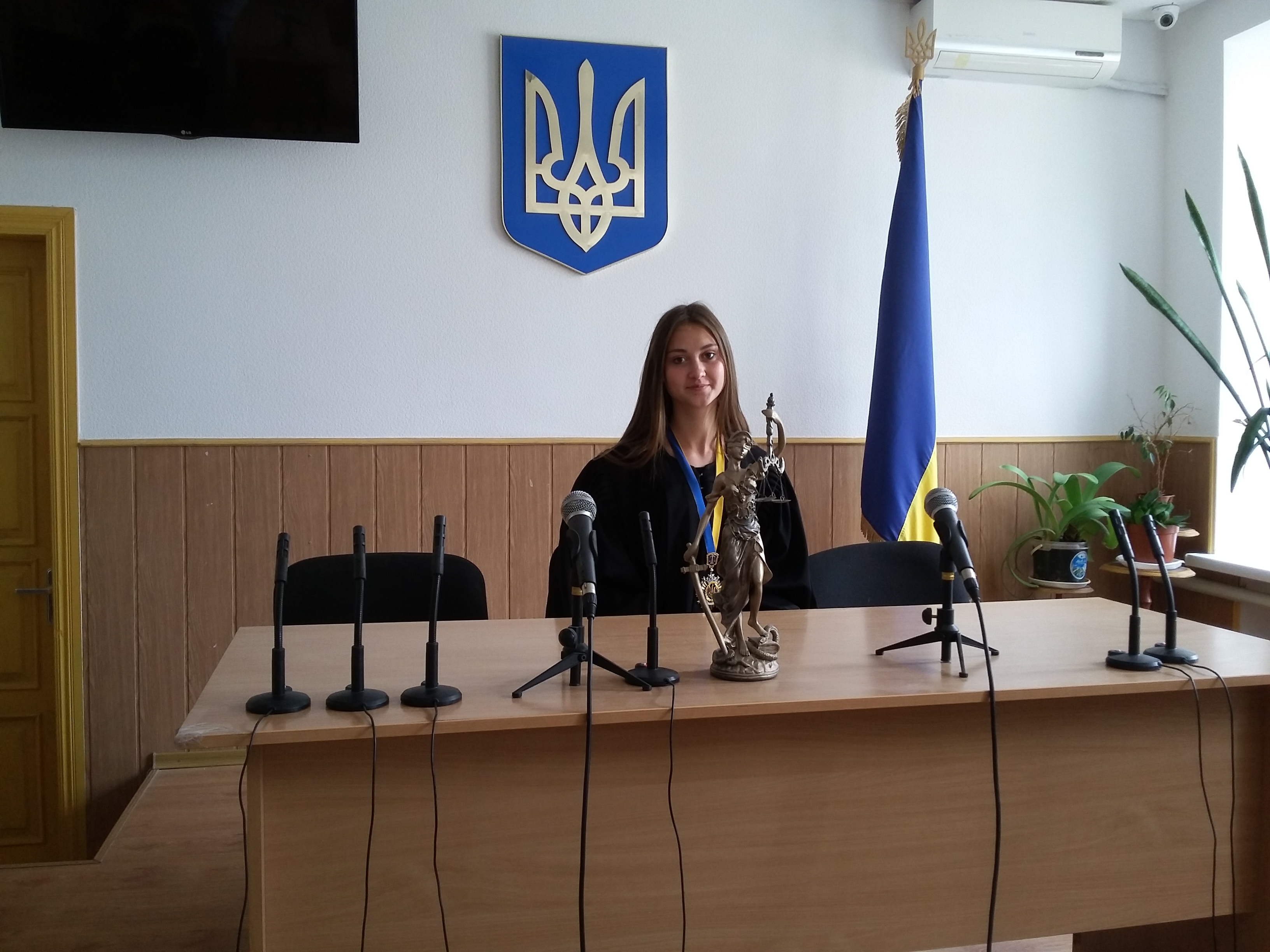 Учнів ознайомлено з мантією і нагрудним знаком судді та була надана можливість приміряти їх на себе з метою відчуття духу правосуддя.