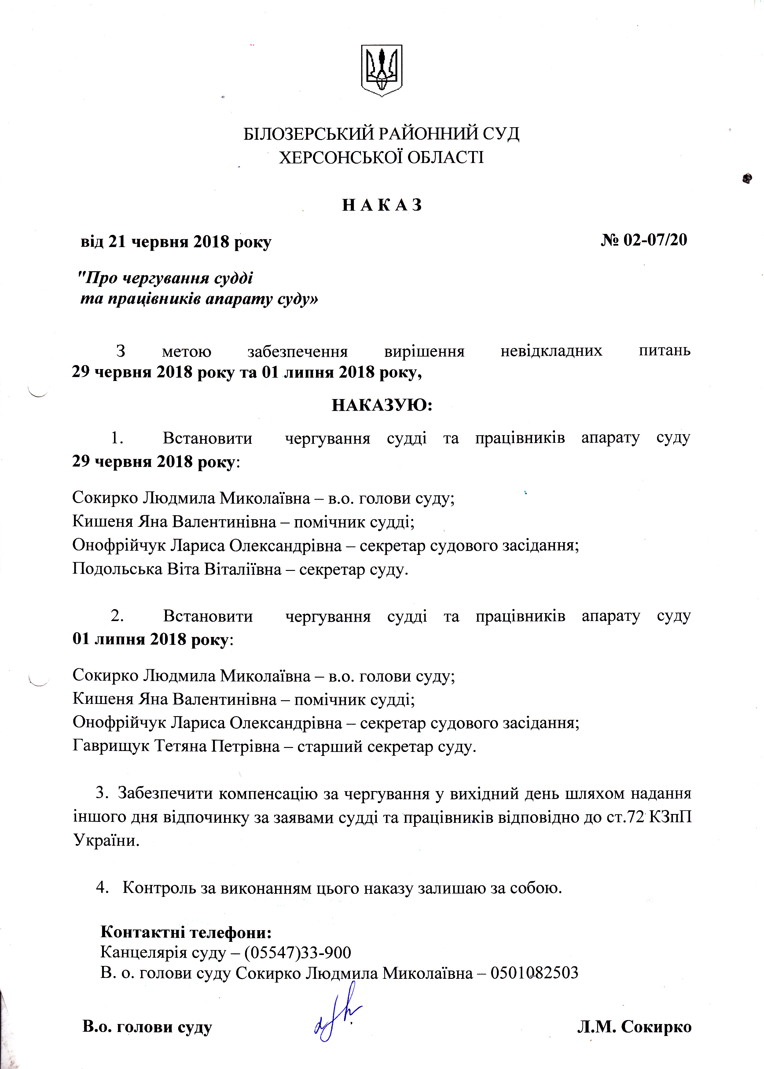 ПРАВИЛА внутрішнього службового розпорядку Білозерського районного суду Херсонської області
